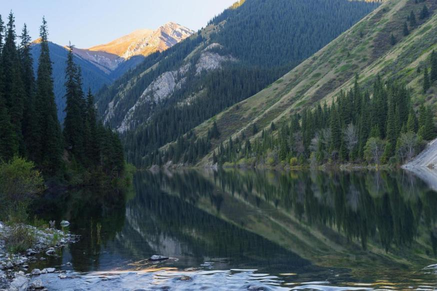 哈萨克语中的“Kolsai”可以翻译为“峡谷中的湖”。阳光照射下,湖水的颜色不断变化,从淡蓝色到浓郁的翡翠色。这座国家公园位于阿拉木图东南方,它是一片被湖水包裹的“森林”,驾驶汽车只能到达其中一个湖泊,其余只能徒步或骑马穿越。景区内主要有三座位于天山山脉北麓的美丽高山湖泊,分别位处海拔约1800、2250和2700米的下、中、上科尔赛湖,被誉为天山上的三颗明珠,是哈萨克斯坦阿拉木图周边热门的旅游景点。
