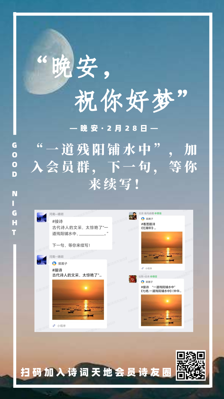 晚安海报丨“一道残阳铺水中”,加入会员群,下一句,等你来续写!