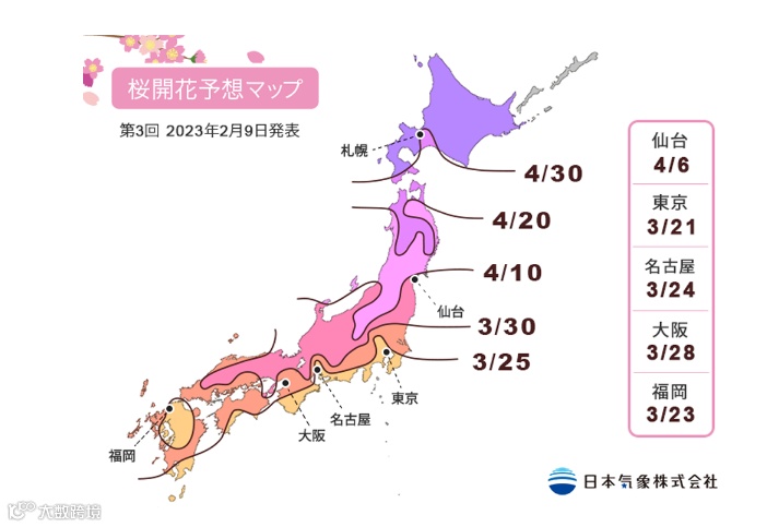 因此每年日本官方及时发布的樱花花期预测都大受关注,近日日本官方气象局已经发布了2023年樱花花期预测。