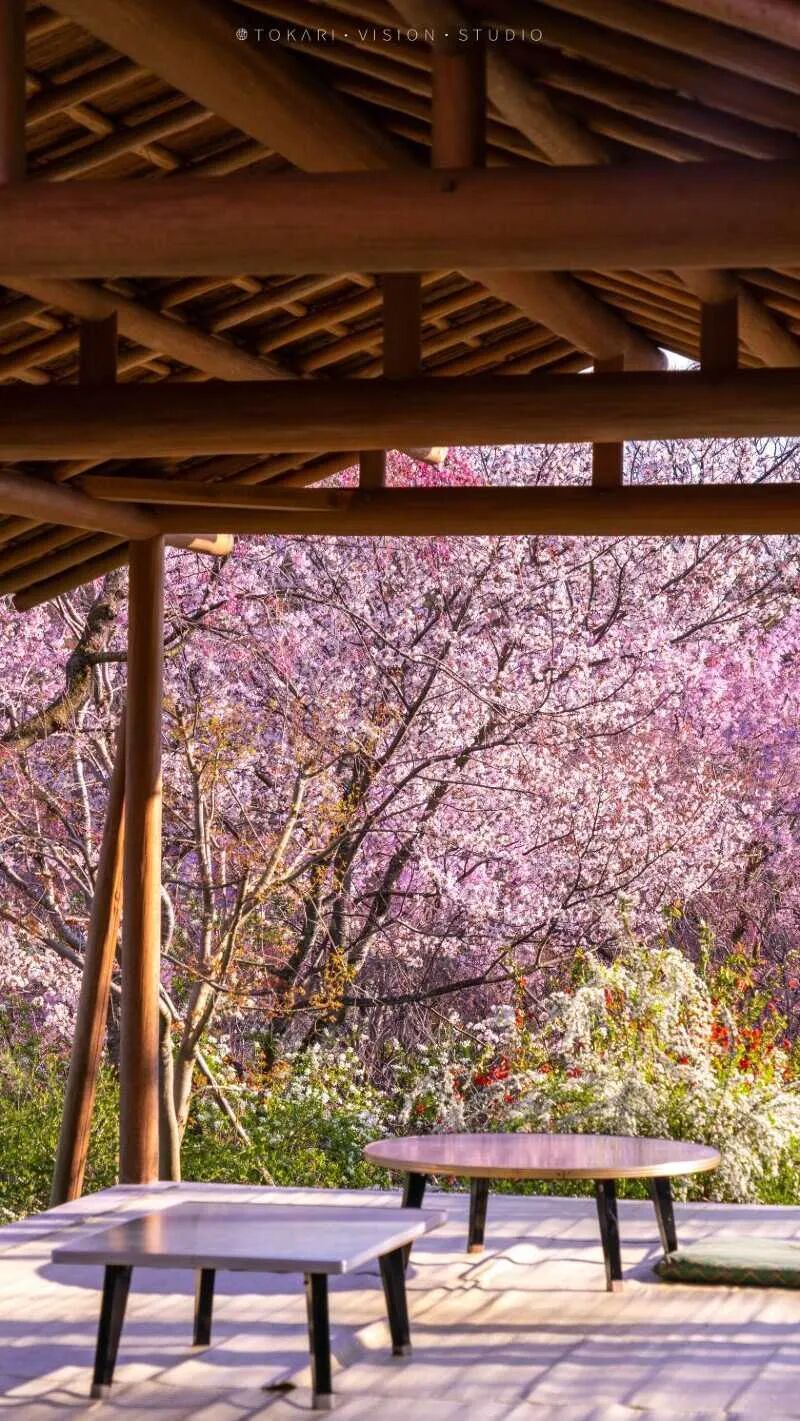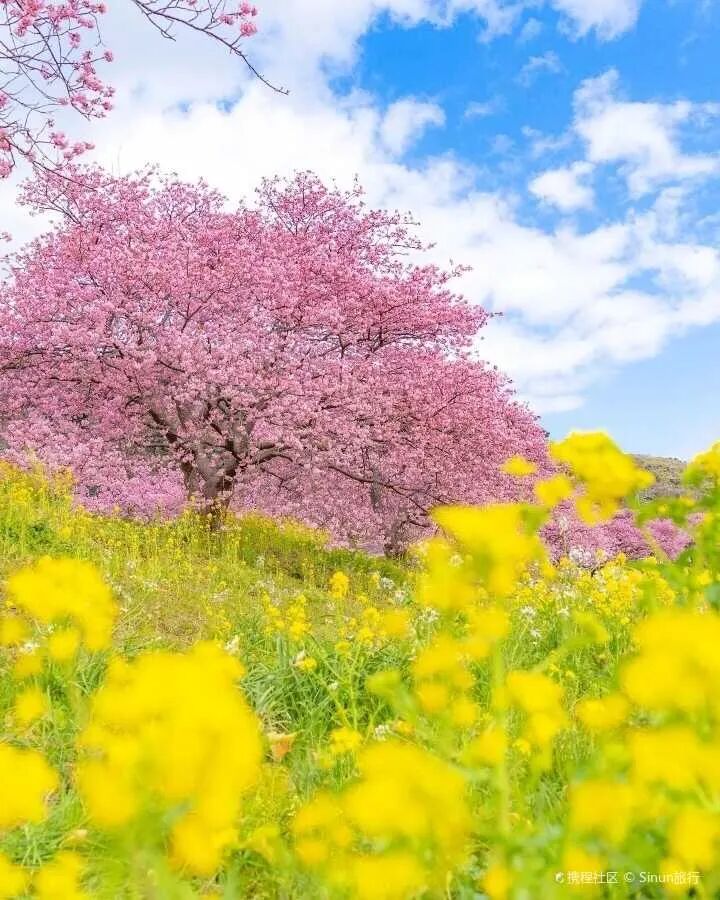 樱花满开时形成的樱花隧道,以及同期绽放的金黄油菜花与粉色樱花交织出的迷人美景,是两大取景圣地。