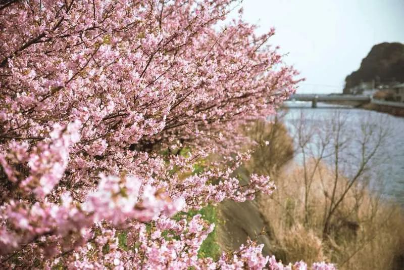 伊豆半岛绵延四公里的河津,在春寒料峭的早春时节樱花已经开放,这个川端康成笔下的温柔地,因为温暖的气候,成为日本本州岛最早能看到樱花的地方。