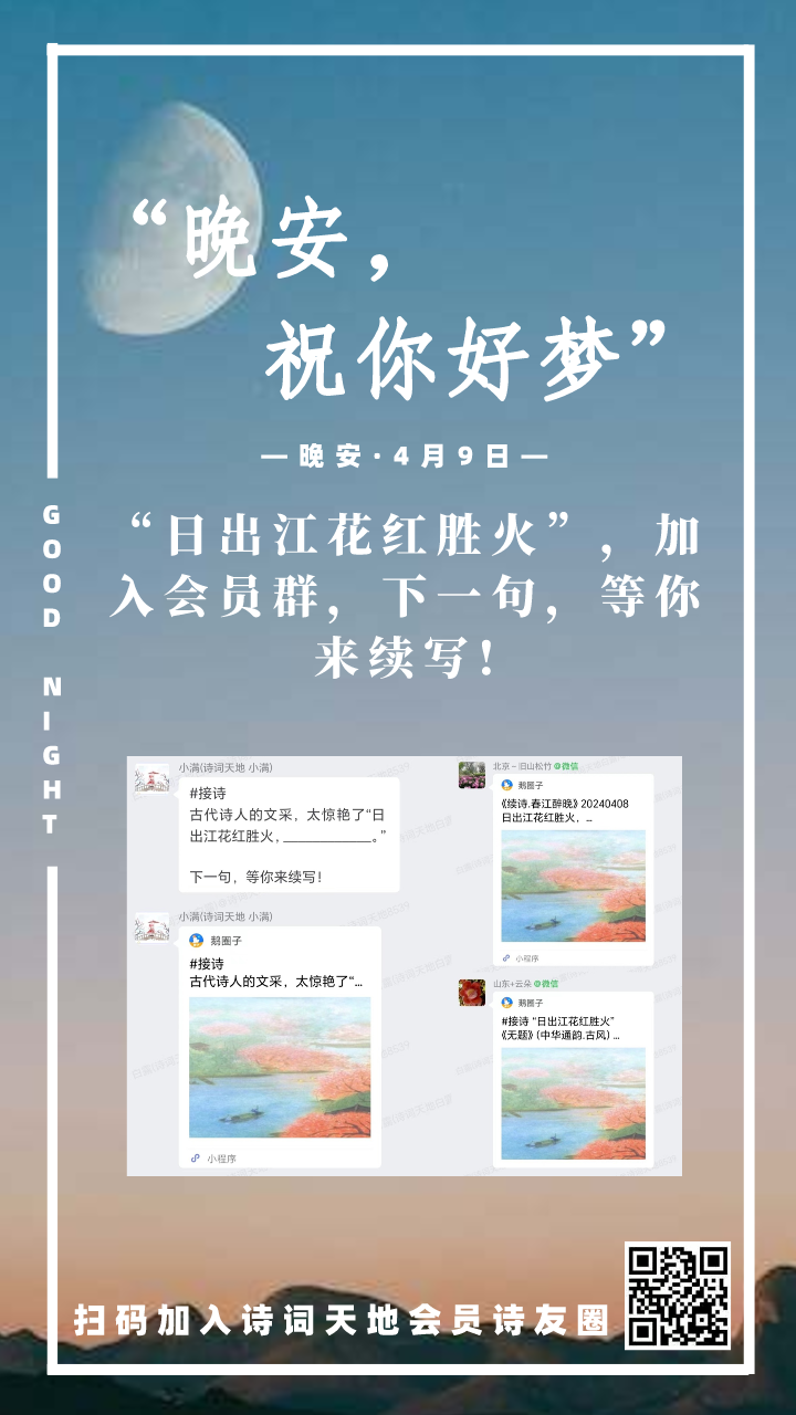 晚安海报丨“日出江花红胜火”,加入会员群,下一句,等你来续写!