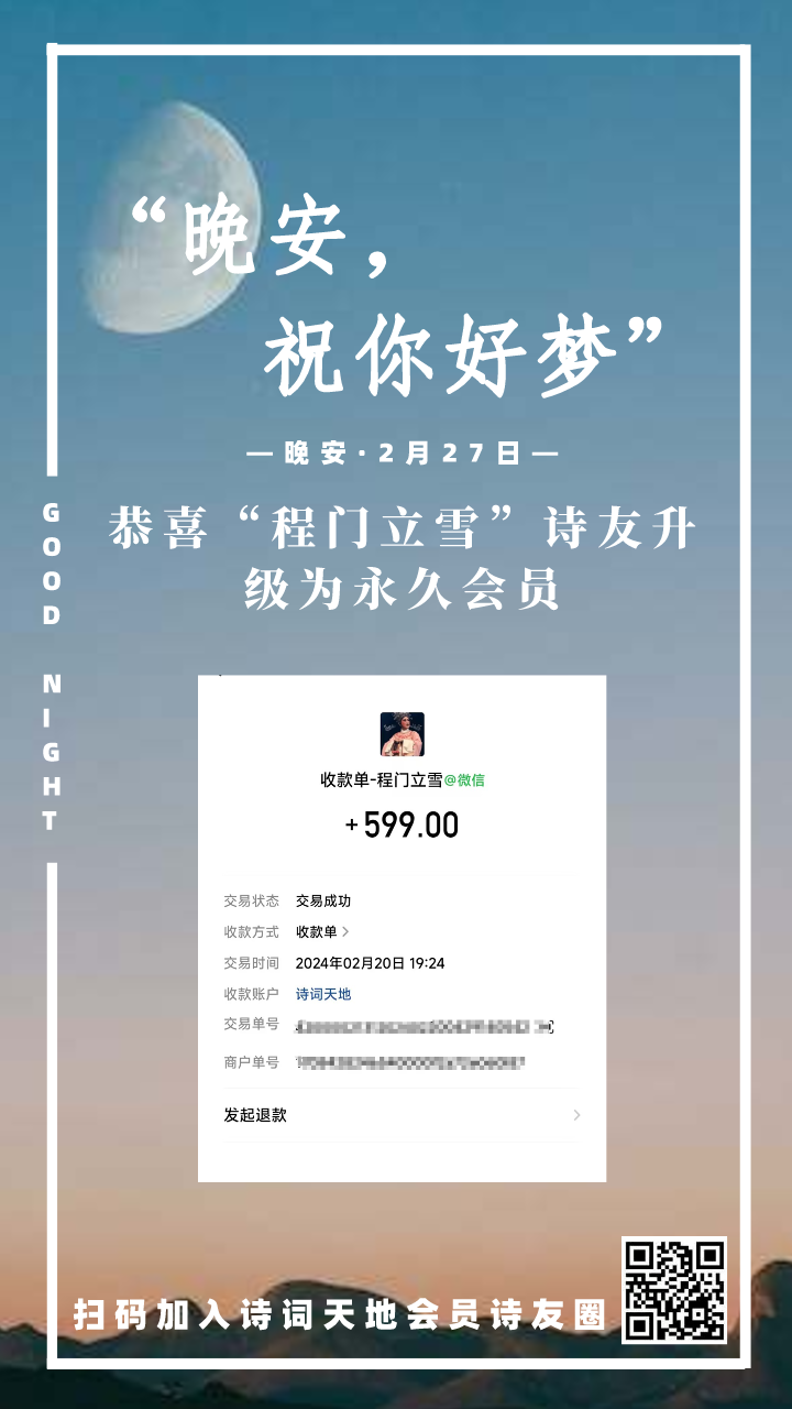 晚安海报丨恭喜“程门立雪”诗友升级为永久会员