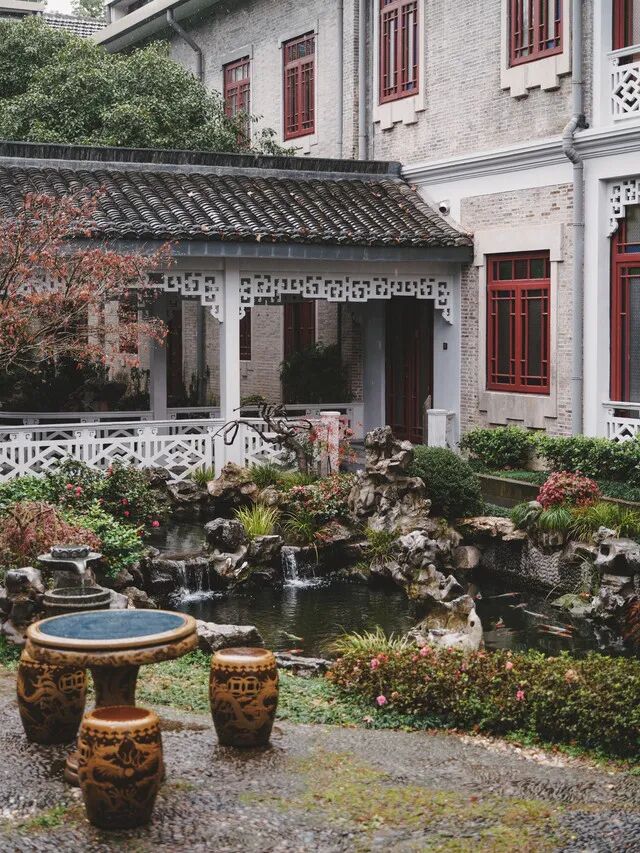 在酒店精致如私人府邸的庭院里感受复古海派生活,漫步亭台楼阁,听一出招贤寺陈伯每周会带来的《陈伯讲故事》,在孤云草舍里品尝正宗的法餐和英式下午茶,西式的小洋楼带着一股漫不经心的优雅,足以令人心折。