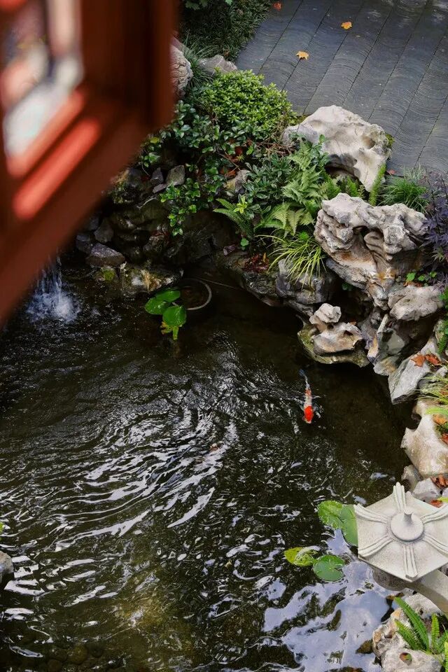 在泳池中心还设有一个独特的水滴艺术装置,时尚靓丽的现代化风带着一些俏皮的艺术气息,与民国风的小楼别墅也没有太多违和感,极为融洽的结合在一起,属实惊艳。