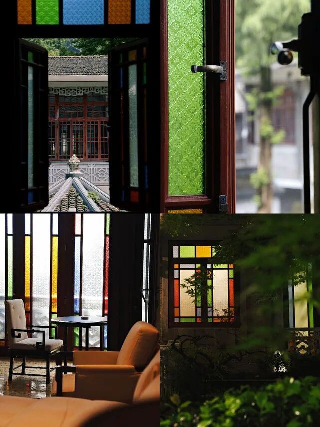 与之相似的是老上海风情满满的「玫瑰情」客房,以张爱玲著名小说《红玫瑰与白玫瑰》为设计灵感,彩色的玻璃格子窗还有重重叠叠的床幔,客厅里复古唱片机播放着百年前的经典乐声……