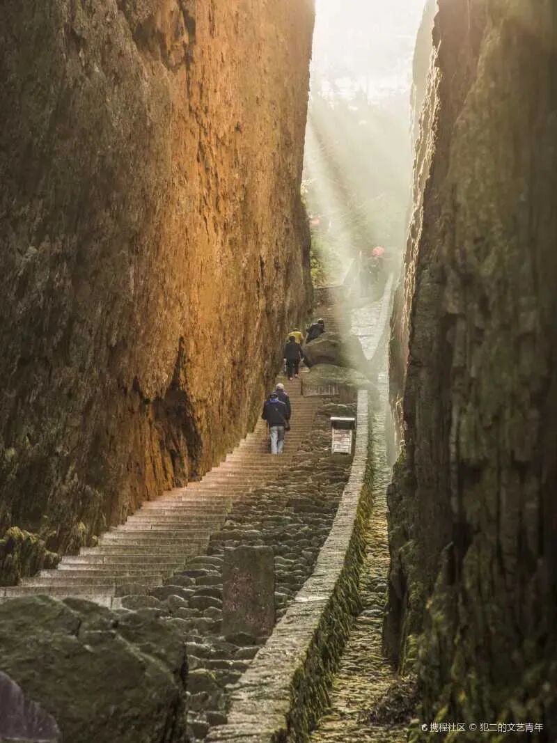 在亚峰玉灵峰之间,有一条狭窄的通道,最窄为3.5米,因其奇、险、陡、峻,因此被誉为全国最长之一的一线天。