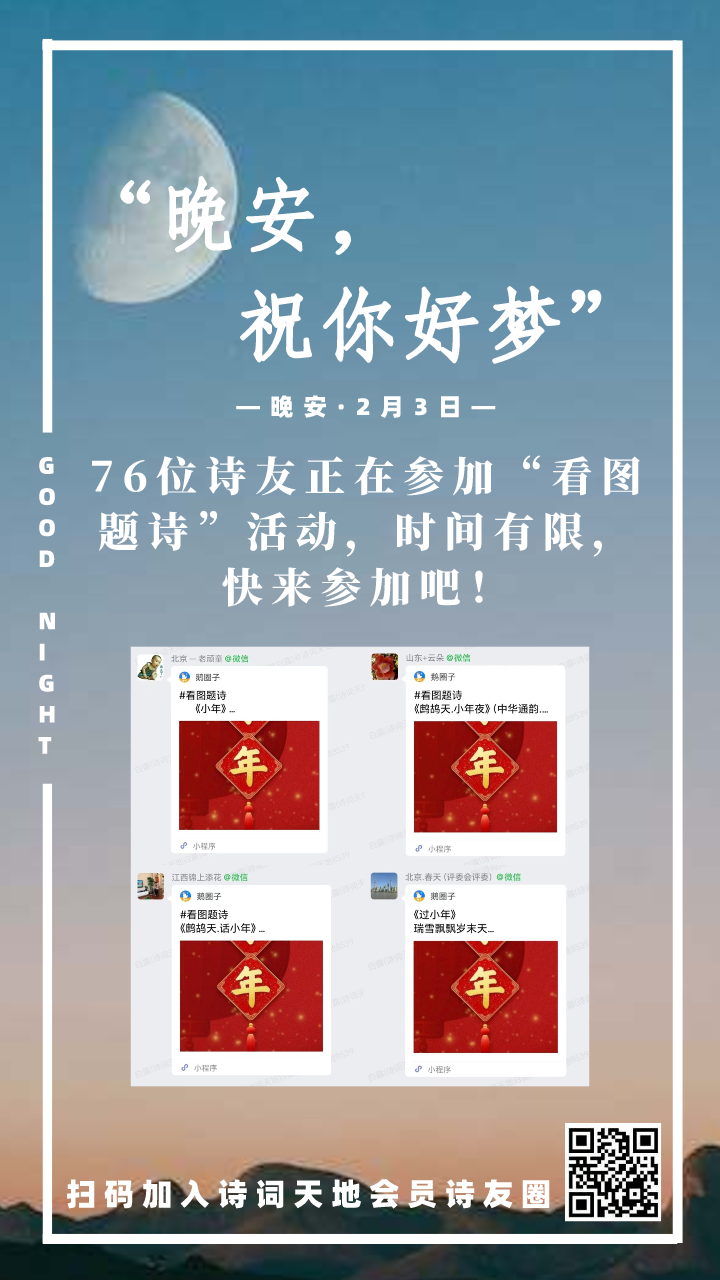 晚安海报丨76位诗友正在参加“看图题诗”活动,时间有限,快来参加吧!