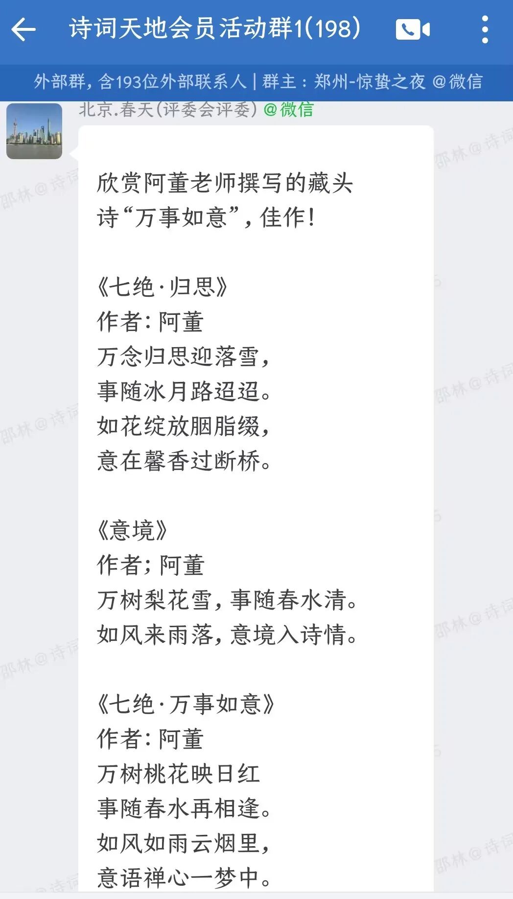 藏头诗涵义深、品味高。每期活动诗友们都热情参与。