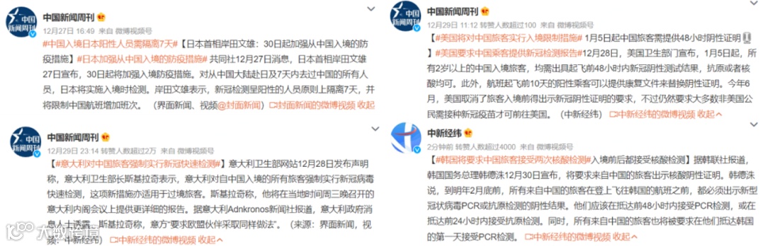 不过,因为我国还处于全面放开初期,有的国家出于安全考虑,出台了一些相应的限制政策。