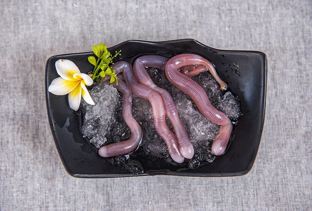 相比海肠做成菜后,已经看不出生前的模样,沙虫做成的土笋冻则是直接很大程度保留了原本的样子。