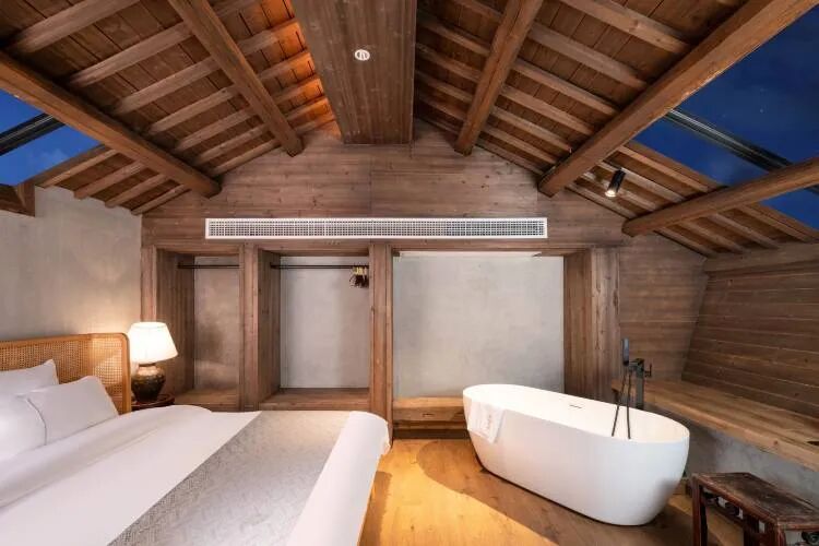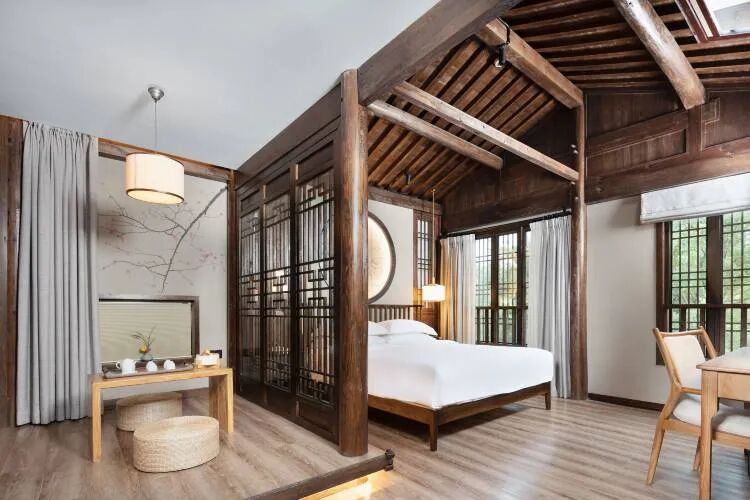 青普·婺源水岸边位于婺源县浙源乡的虹关古村,由建筑主体由60年代的废弃老厂房、榨油厂、古樟饭店改造而成,设计是工业风与现代北欧极简风格结合,竟然一点也不突兀,还配了咖啡厅、酒吧、书店、手作室、露天泳池、菜园,度假感与生活气息兼备。