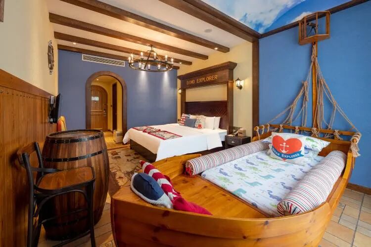 房型是航海亲子房,日常如果带双早的话,一晚随随便便就一千四五了,现在¥899起搞定一晚,关键还带中华恐龙园双人二日无限次门票、 恐龙人防灾避险体验馆双人票,光是票价就值了好吧!