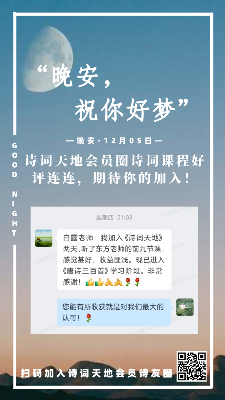 晚安海报丨诗词天地会员圈诗词课程好评连连,期待你的加入