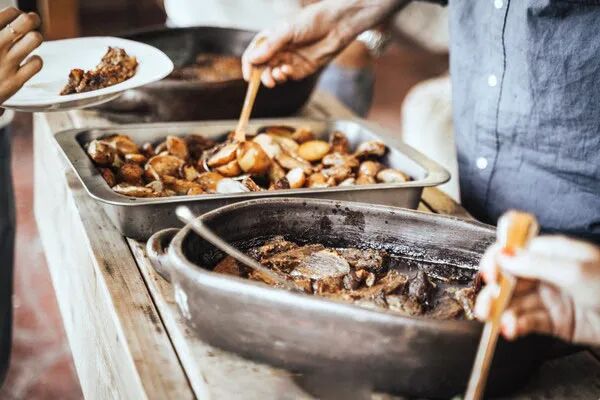 其他的各色小吃佳肴也是极其吸引人,鸡肉蔬菜汤、卷酥馅饼、牛排米饭、每一样都让人食欲大动。