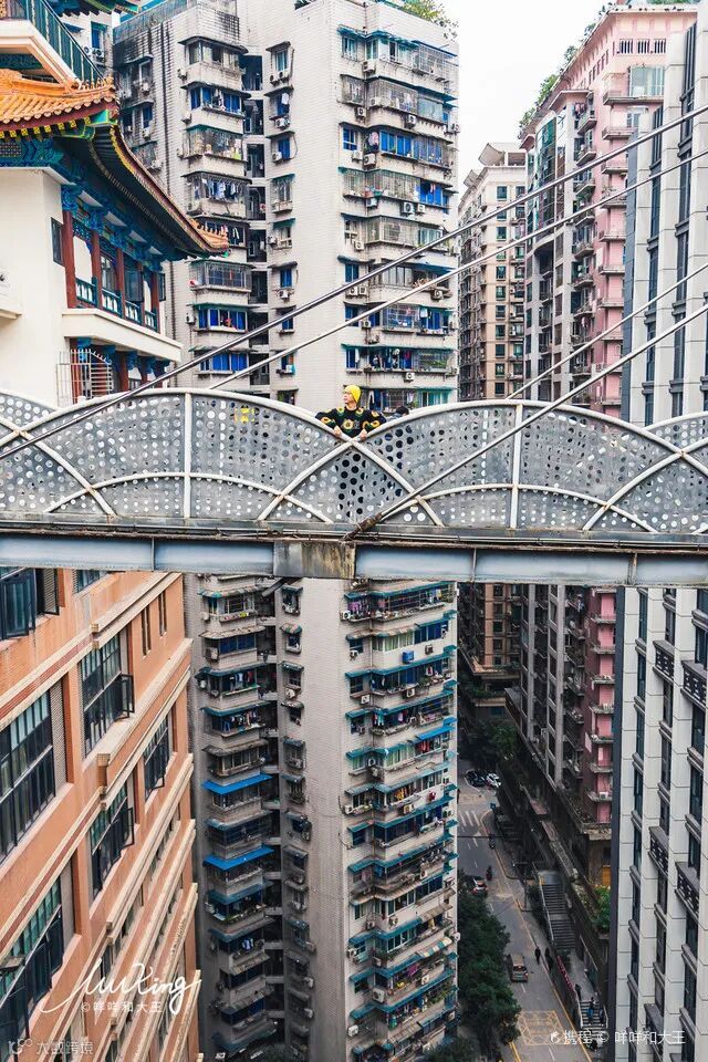 魁星楼位于解放碑临江门,一个很魔幻的地方,新建的2座悬空天桥和旁边的高楼连为一体,站在这里你都分不清你到底在多少楼,是《少年的你》的拍摄地。