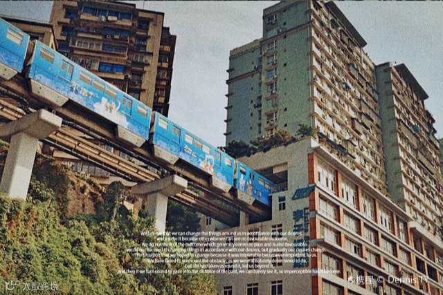 叠摞五层的高空立交桥,穿楼而过的轻轨2号线,横跨长江的“空中公共汽车”……这是一座“8D立体城市”,人物在这里,有一种逃不出的感觉。
