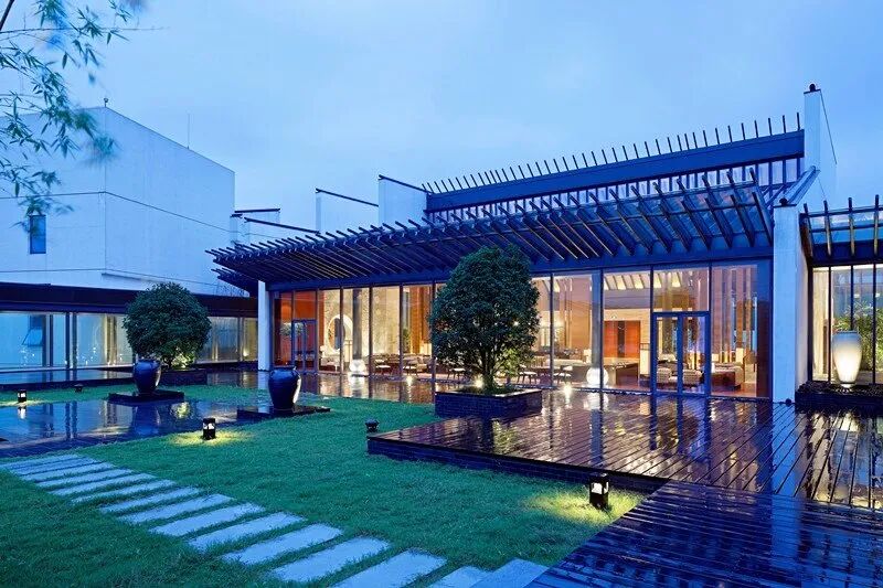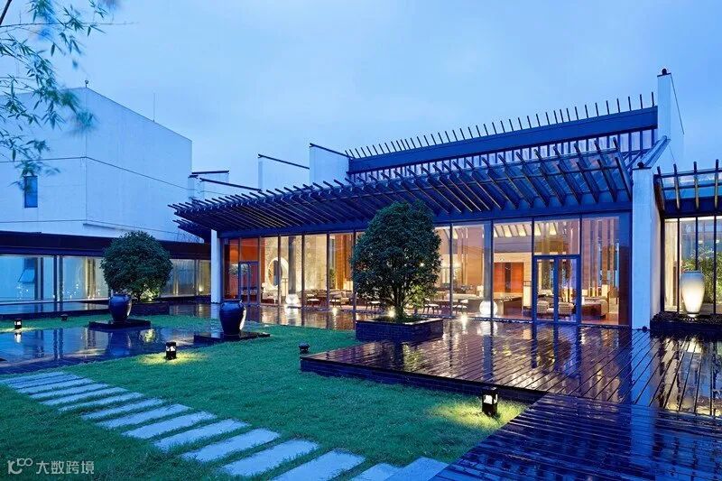 酒店看似低调,实则举办过多次大型活动,还是综艺《中餐厅》取景地!先看位置多好,就坐落在宋城步行范围内,北临梅家坞茶园,东靠西湖,离九溪烟树、云栖竹径约10min车程,设计以拉斯维加斯The Mansion at MGM Grand为原型,自带后山花园,美式风格与中国传统元素相融合,真有山林城堡feel!