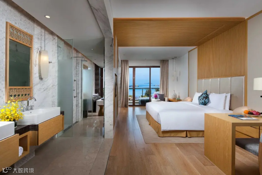 今天的套餐称得上性价比超牛!2晚高级海景大床房连住,在房间里就能看海赏海,双洗手池+浴缸的设计十分贴心。