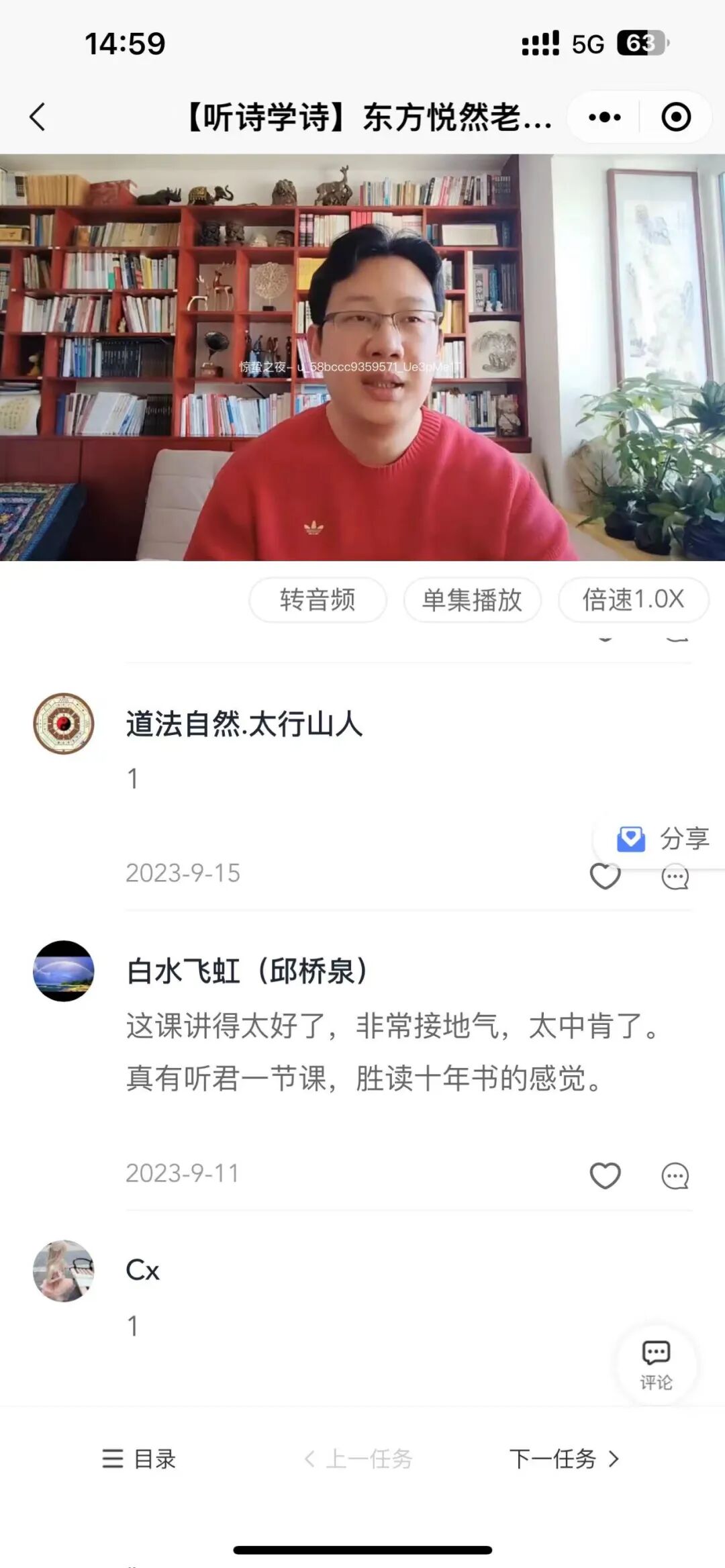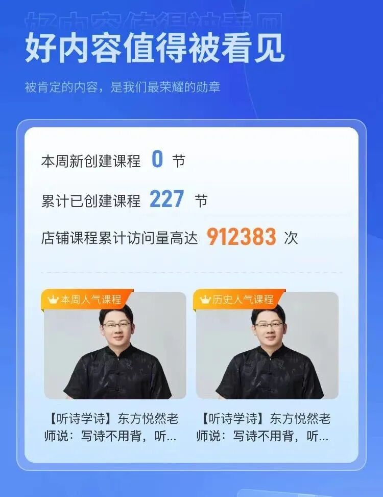 1,学诗不用背,听完自然会——东方老师独家300首唐诗解读免费听,每首仅需3毛钱。