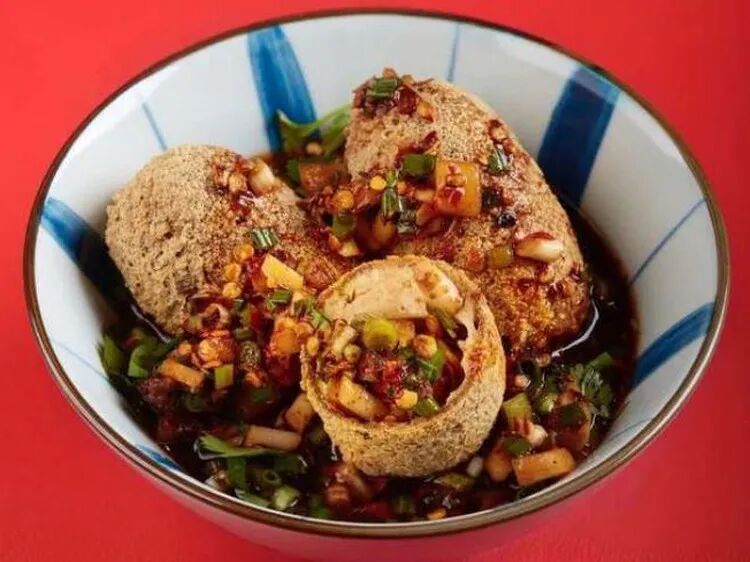 豆腐圆子是贵阳当地传统美食,将捏好的豆腐丸子炸至金黄酥脆,内里依旧保持豆腐的细软柔滑。可依旧个人口味配上折耳根、酸萝卜、蘸水一起食用。豆腐圆子香脆可口,和众多辣椒、酸菜搭配起来都很和谐!