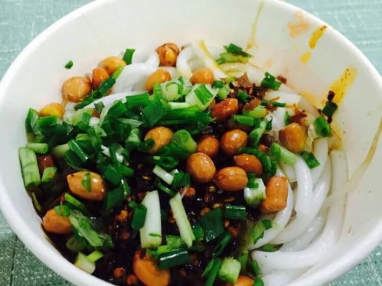 酸粉的制作原材料是早籼米和粳米,两者经过混合浸泡,快速发酵,产生酸度后将之打磨成浆,持续施压,完成液态到固态的转化,再经过二次发酵,酸味更加馥郁,最后碾压成条。之所以叫它素粉,是因为它尽靠一勺贵阳特有的“油辣子”,爽滑的粉加上油辣子,真的是香到不行。