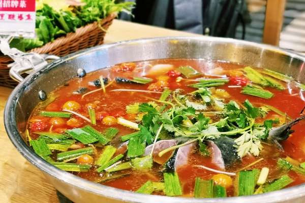 优质发酵酸汤中加入精选的野生小蘑菇、辣椒末、木姜子、胡椒等反复煎熬,精心研制出的酸汤酸辣爽口,沁人心脾。鱼现挑现杀,放入酸汤里充分熬煮,使之入味,不久便能食用。