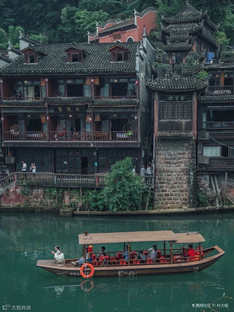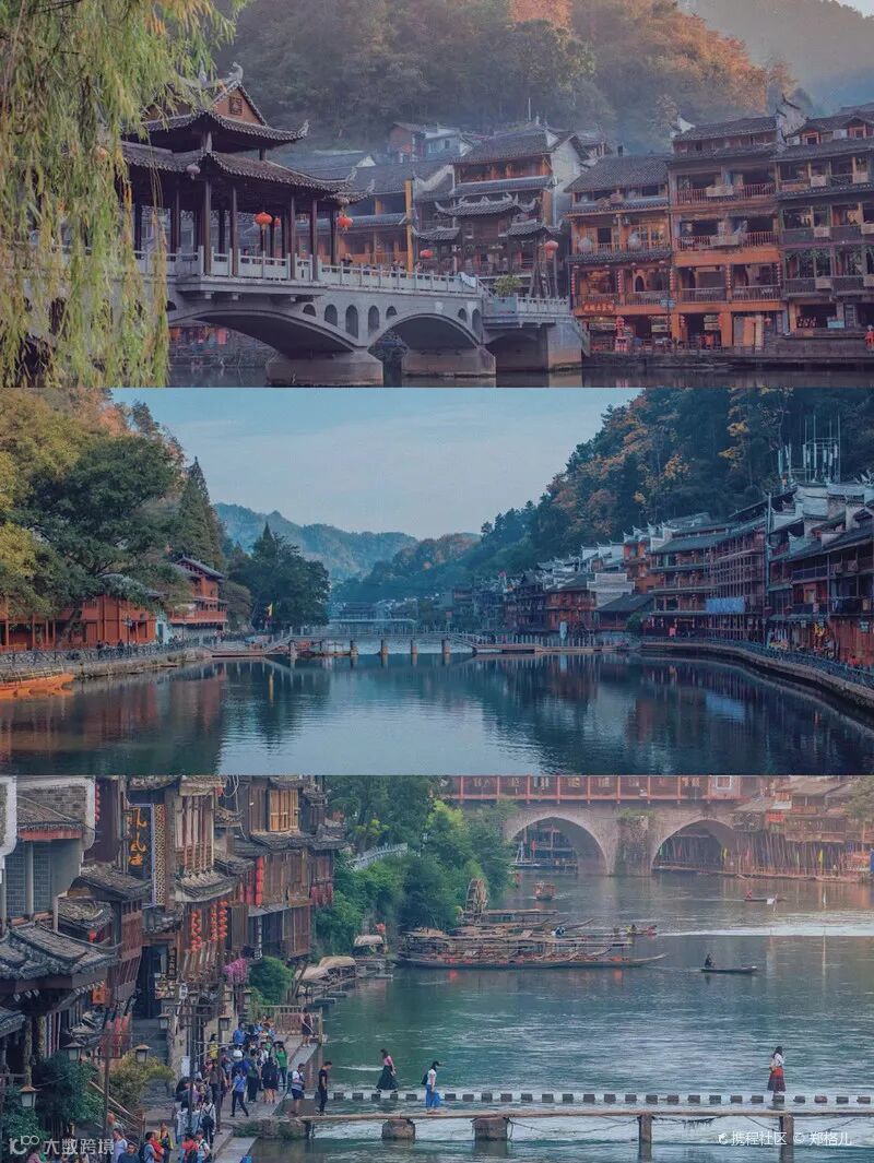白天看山水、晚上看夜景,去沈从文先生的故居一游,到杨家祠堂听一曲凤凰苗家老戏、泛舟沱江听苗族阿妹唱山歌、坐在乌篷船上穿越古城梦幻夜景,都是不错的体验,而且这里还十分出片~