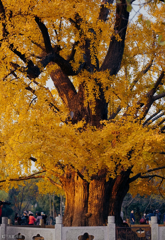 每年秋天,树上溢彩流金,树下光影斑驳,很多人都慕名而来一睹这一树金黄,感受古银杏的灵气。