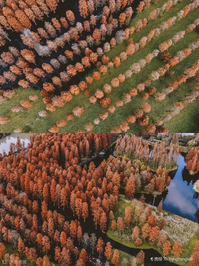 现在这个时节,一片片红黄绿交错的水杉景色当属江南的独占魅力,而青西郊野公园就是一处绝美秘境!