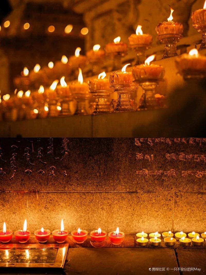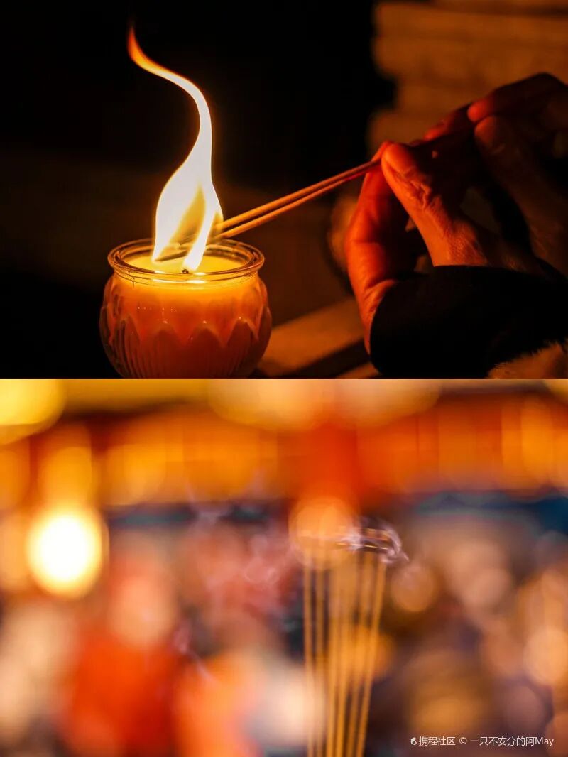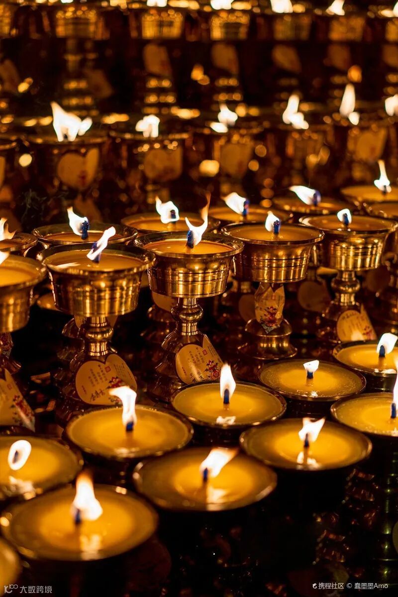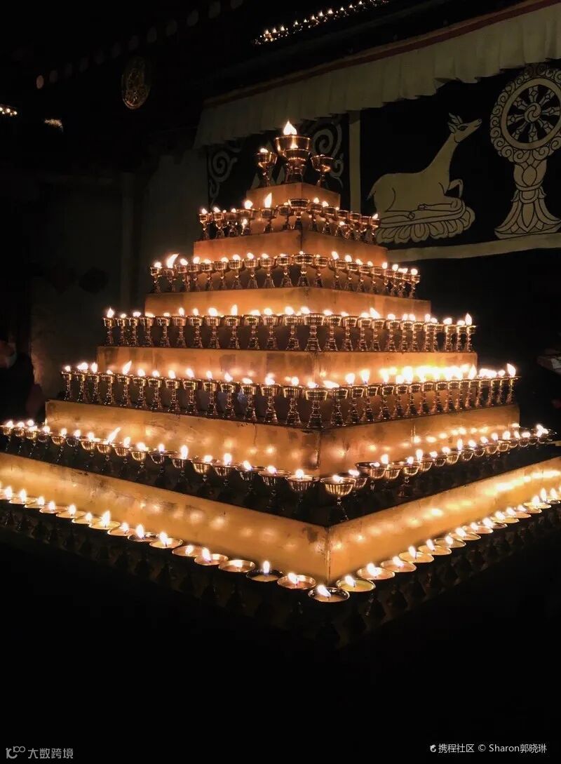平日里的寺庙就是人来人往的朝拜圣地,在燃灯节这一天更是繁华到了极致,无数酥油灯被点燃放置在灯塔上,绵延上百米的灯火逐渐延伸到城里的家家户户。