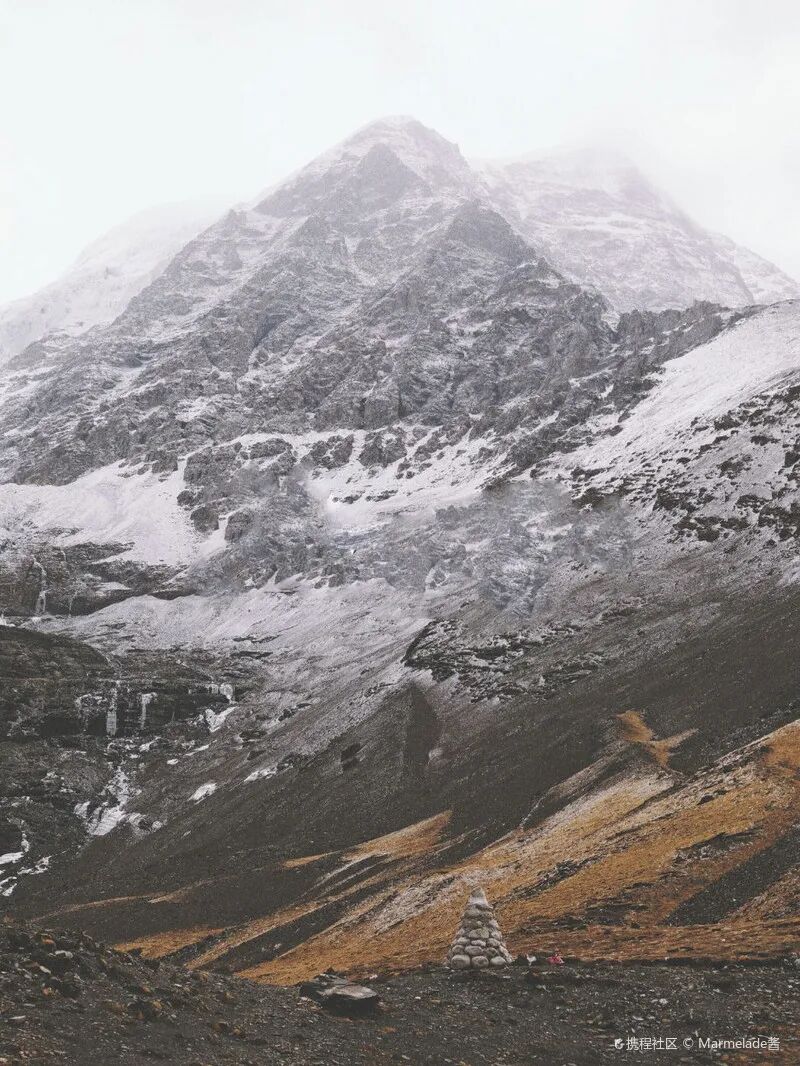 刀劈斧裁一样的峭壁山路让这里有一种危险的刺激美感,怪石嶙峋处处皆是风景,雪峰映入眼帘后的纯洁和浪漫又是别样的惊喜!
