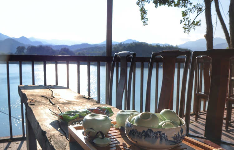位于泰顺的白鹤山庄依着飞云湖而建,位于群山峡谷的中间地段。