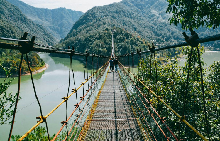 最重要的是这里有一条长达358米,高48米的中国第一悬空铁索桥,横跨在峡谷中央,一眼望去,特别的壮观,站在上面,会看到流淌在脚下的碧水,峡谷的美景尽收眼底。