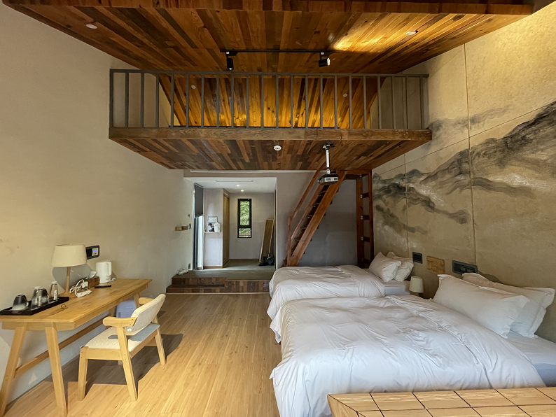 这个房型景观更赞,大落地窗迎接山林美景,部分房间带阁楼,顿时就有了一种森林小木屋的feel。