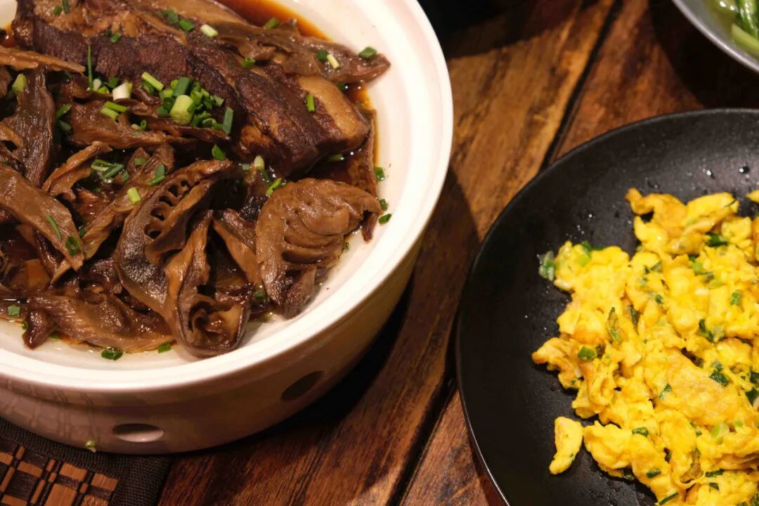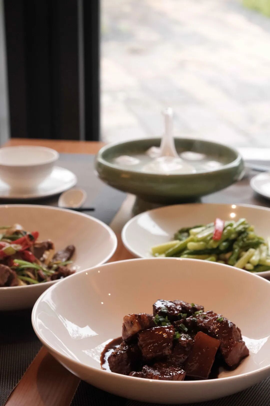 红烧肉软烂入味,芦笋嫩得汁水十足,牛肉鲜香可口,还有独特的竹荪鱼丸汤,汤头极为鲜美,忍不住点个赞!