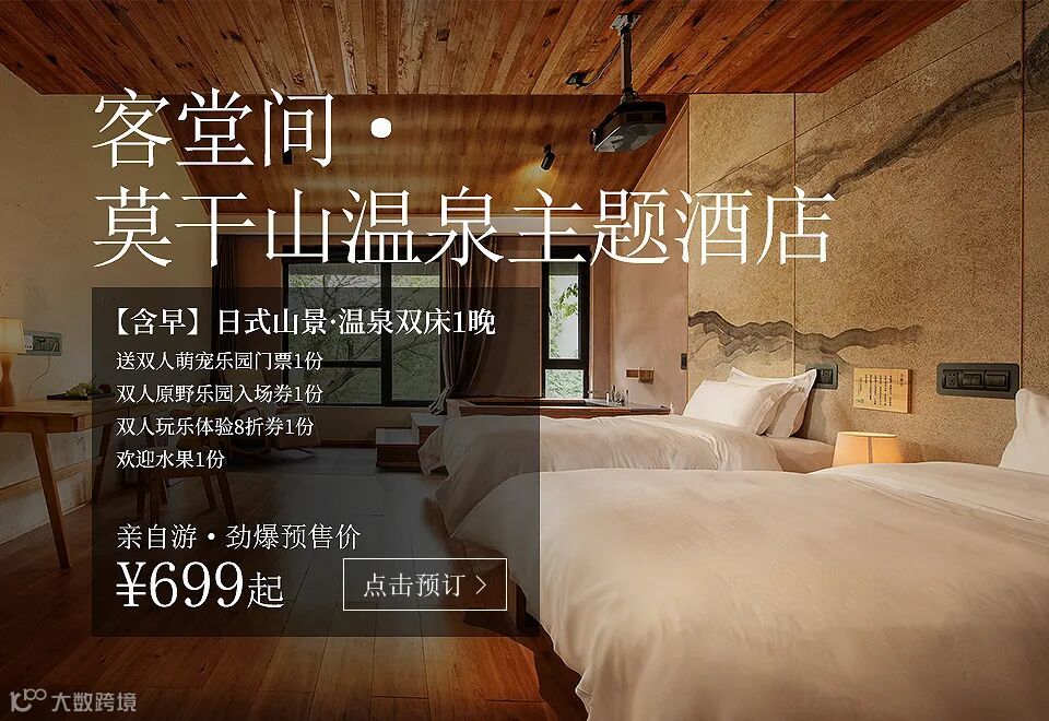 划算炸!日式温泉酒店¥399,新开网红民宿2晚¥999,莫干山狠价来了!