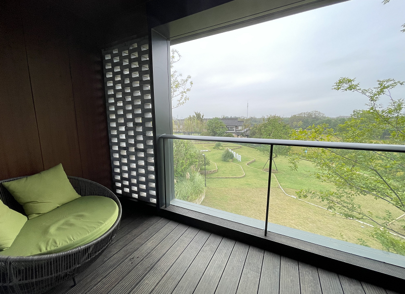 这个房型呢,则是以景观取胜了,依旧是原木feel的客房,配备超大的景观阳台。