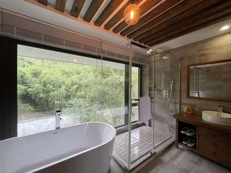 部分房间配有浴缸,甚至还有这样的观景位,泡澡赏景,这feel舒坦到了骨子里!