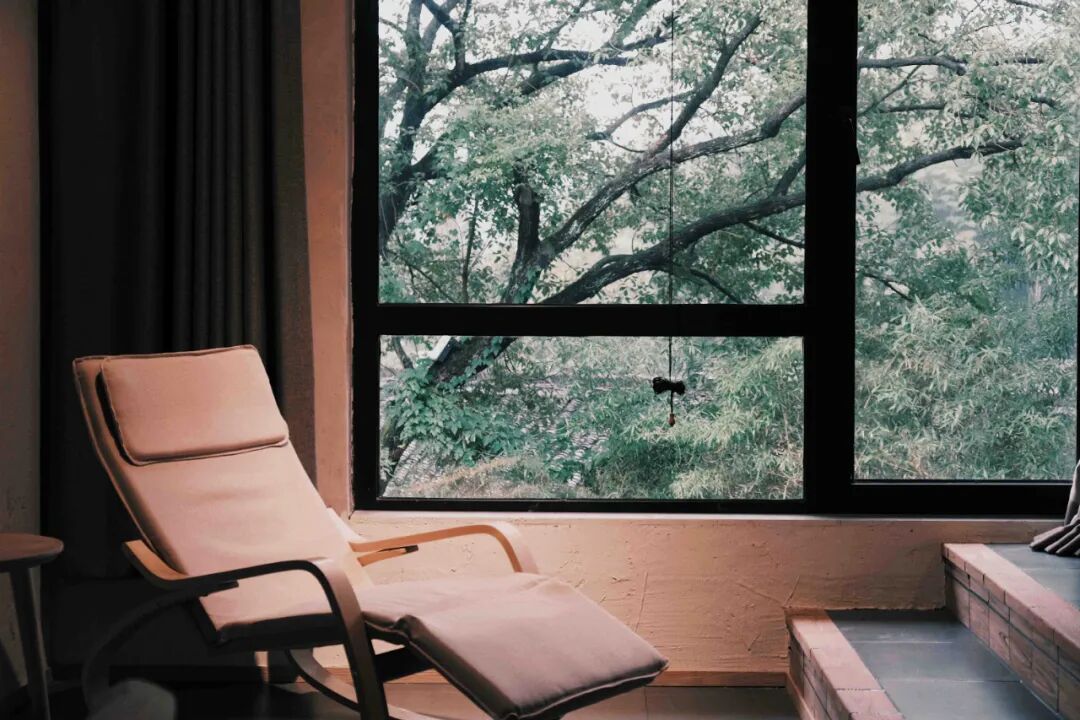 几乎占据整面墙的落地窗,将山间的好风景轻松揽入怀中。