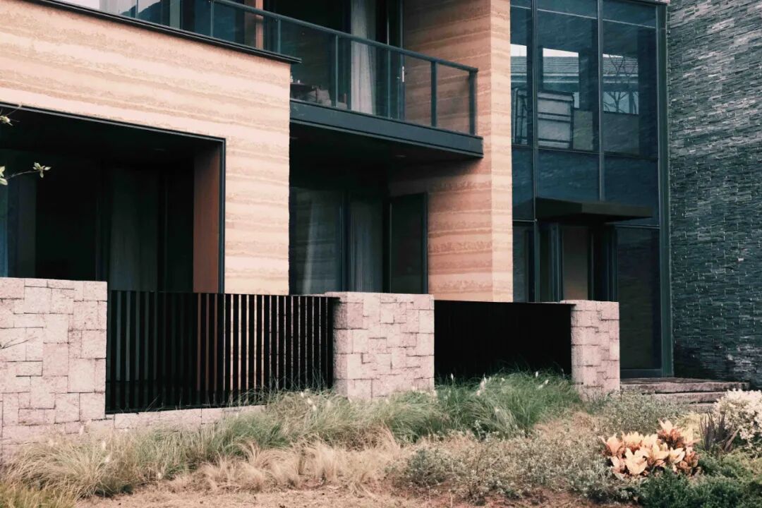 16幢小屋以小道与花草相连,木质、夯土、岩石、水泥,多种材料交叠在一起,你还别别说,有点怪,怪好看的!