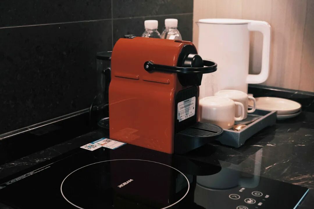 客房配套设施不输星级酒店,面积55㎡左右,微波炉、胶囊咖啡机、茶包一应俱全,连洗护备品都用的是意大利ACCA KAPPA的网红款白苔香系列,小细节做得相当到位。