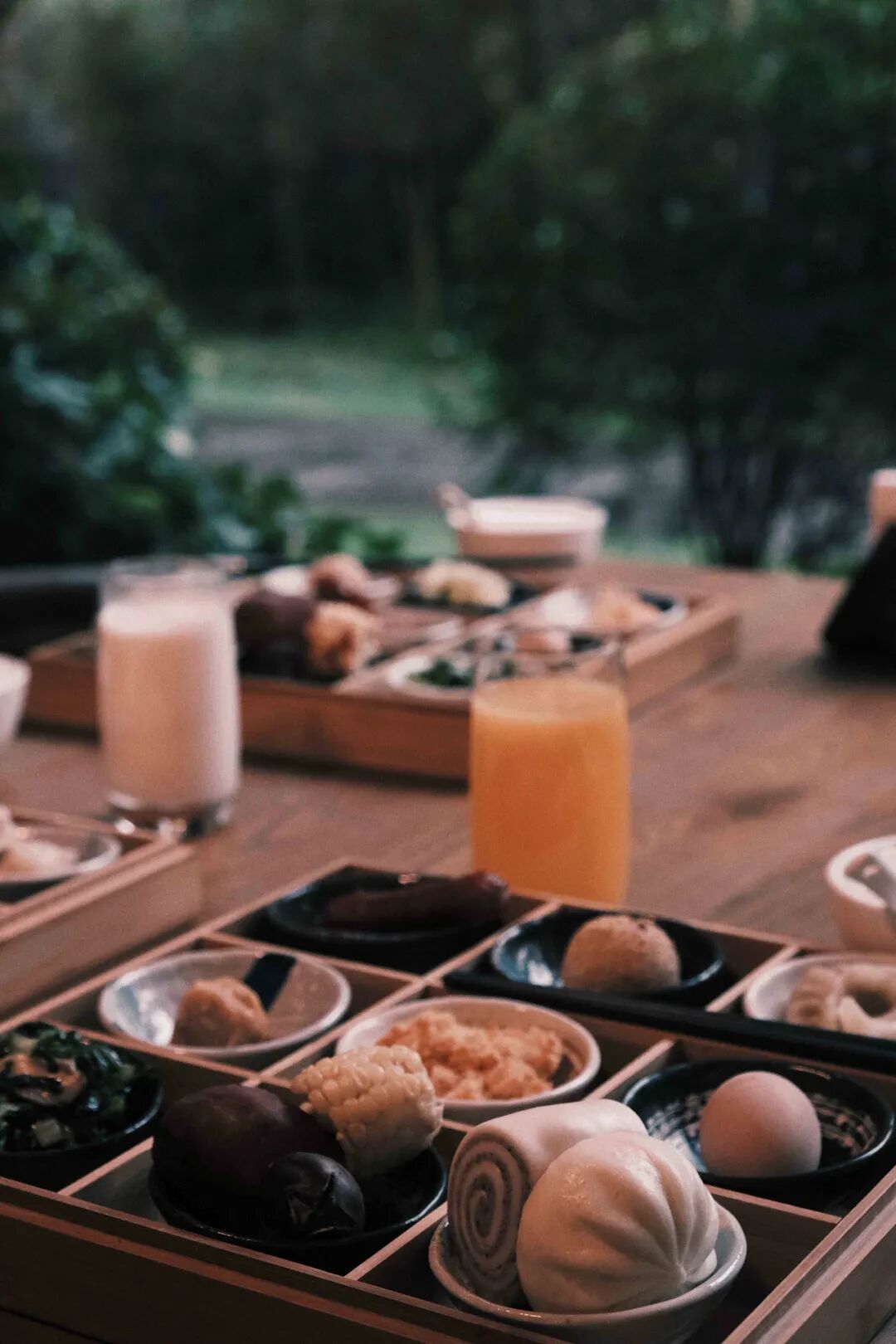 我们在这儿一共吃了早中晚三顿,早餐和中餐体验了定食套餐,主打乡野+日式特色,摆盘精致,味道爽口。