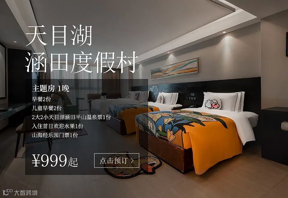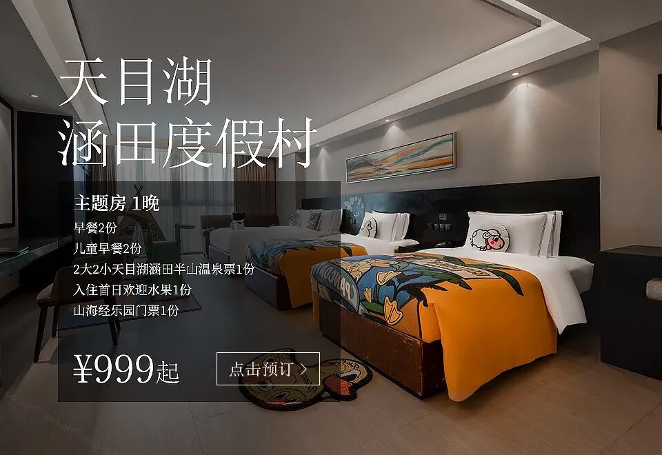 想连住2晚?买这个:¥1888起,【含2大2小早餐】主题房2晚,送2大2小天目湖涵田半山温泉票1份+双人涵田聆湖湾商业街k1俱乐部卡丁车1节1份+山海经乐园门票1份等