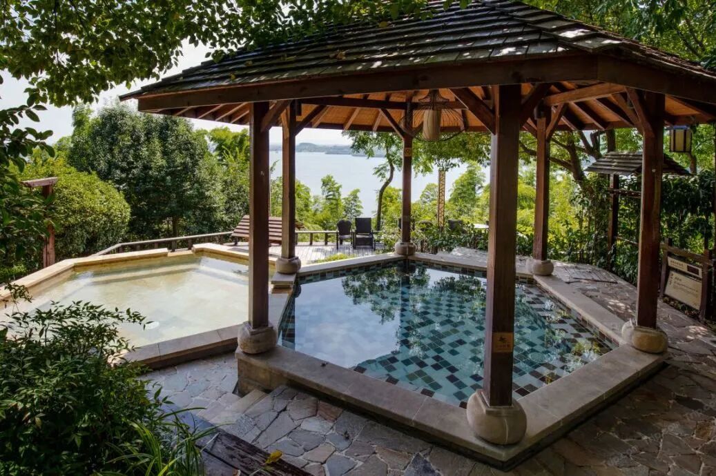 天目湖半山温泉临天目湖而建,一边泡汤,一边看景,视野真的绝了!各式泡池在丛林掩映中,一边散步一边解锁不同泡池,有种丛林探秘的乐趣。