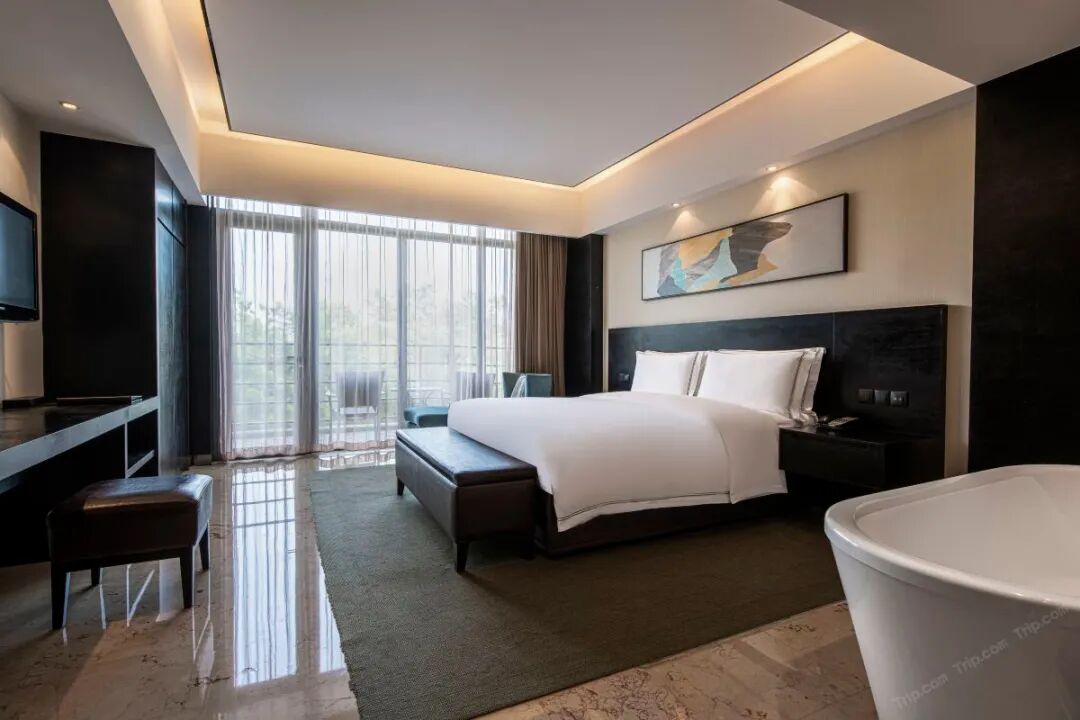 酒店1层有个亲水平台,小朋友可以在大草坪上尽情奔跑,全家人沿着亲水步道散步赏景,别提多舒服了!