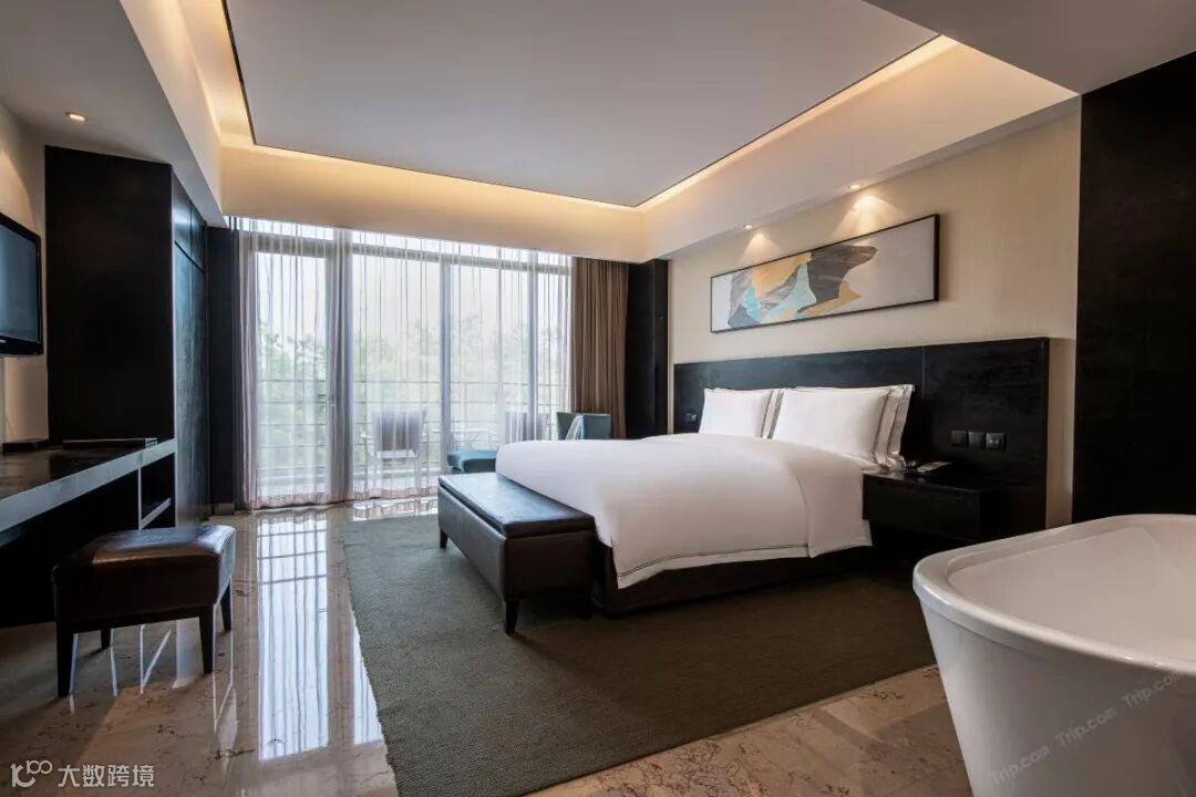 酒店霸占了天目湖的半岛,位置无敌,不管你走到哪儿,都可以看山水。走进酒店大堂的第一秒,就被眼前的巨幅山水惊艳到了!