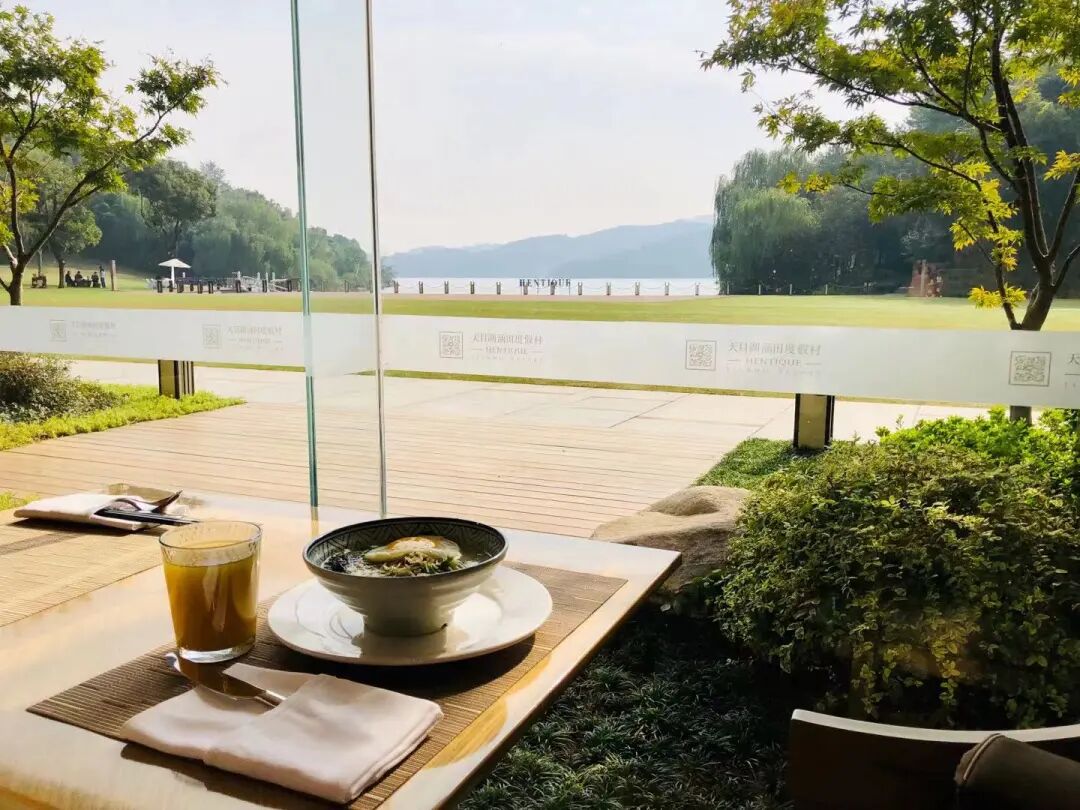 酒店的早餐是很丰盛的那种,感觉就是自助午餐简化版,而且还可以边看湖景边吃哦。