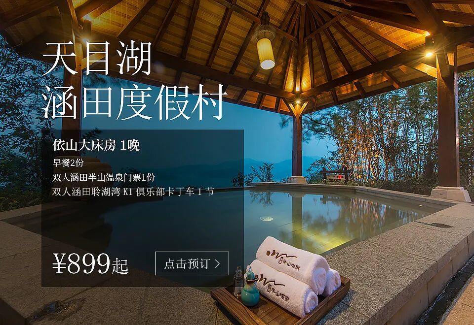 想住双床房?买这个:¥899起,【含双早】依山双床房1晚,送涵田半山温泉门票2张+双人涵田聆湖湾商业街k1俱乐部卡丁车1节1份