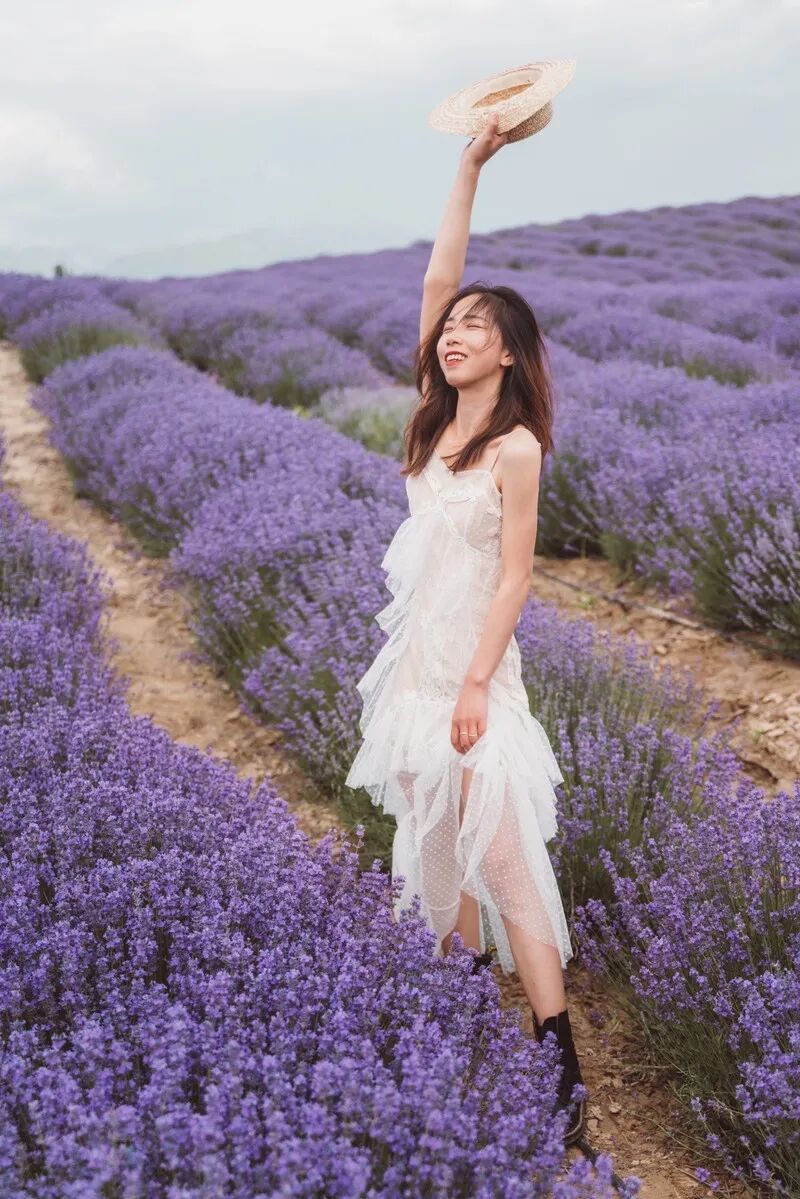 一定要选择在黄昏有坡度的山谷上拍照、山谷上层层叠叠的薰衣草美如幻境,配合着紫红色的夕阳光辉真的是绝世的美丽啦!